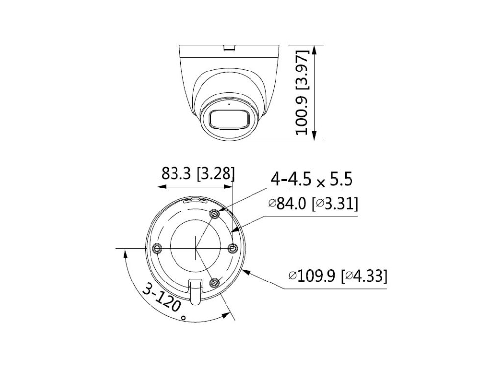 4 Mpx dome IP Starlight kamera, exteriérová, Day/Night, Smart IR prísvit s dosvitom 30 m, 1/3" 4Megapixel progressive CMOS, rozlíšenie 2688 × 1520 px, snímkovanie 20 fps, citlivosť 0,008 lx @ F1.6, pevný objektív 3,6 mm, uhol záberu: H: 84°, V: 45°, D: 100°, AWB, WDR 120 dB, AGC, 3D DNR, HLC, BLC, kompresia H.265 / H.265+ / H.264 / H.264+ / H.264B / MJPEG, ONVIF kompatibilné, audio I/O 1/1, RS-485 rozhranie, slot na MicroSD kartu max. 256 GB, pracovná teplota od -40 °C do +60 °C, napájanie 12 V DC / PoE (802.3af), spotreba < 6,6 W, 550 mA, rozmery ø 109,9 x 100,9 mm, hmotnosť 0,39 kg