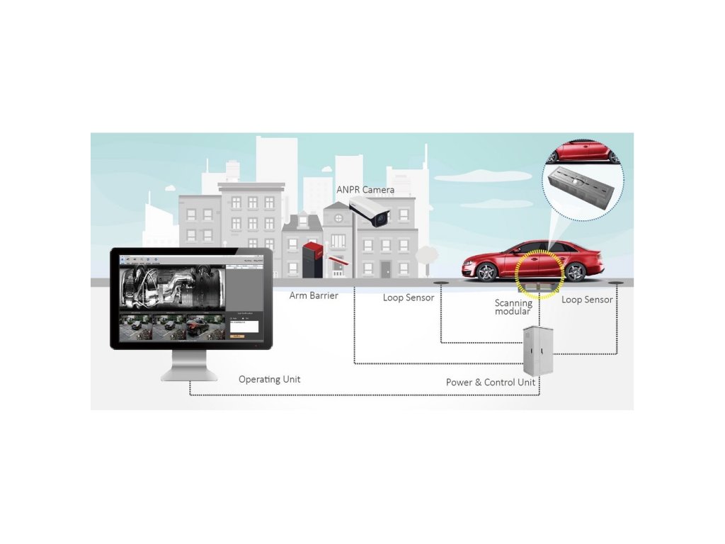 Modulárne zariadenie pre monitoring podvozkov vozidiel, uhol pohľadu 180°, maximálna šírka vozidla 4,5 m, maximálna rýchlosť vozidla 80 km/h, odporúčaná rýchlosť ≤ 50 km/h, výška podvozku vozidla 60–2000 mm, váha vozidla max. 50 t, prisvietenie LED svetlom, vzdialenosť vysielanie obrazu podvozku max. 70 m, set obsahuje zobrazovacie zariadenie, kabeláž a inštalačný box, IP 68, napájanie AC 230 V, pracovná teplota od -35 °C do +60 °C, rozmery inštalácie 1200 x 360 x 290 mm.
