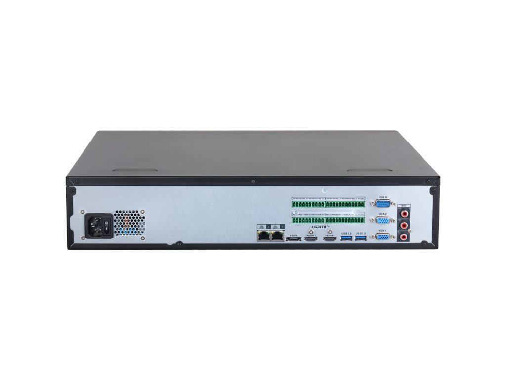 Videorekordér IP sieťový 32-kanálový, záznam / živý obraz / prehrávanie v 4K, OS Linux, podporované formáty Smart H.265+ / Smart H264+ / H.264 / H.265; záznam max. do 512 Mbps (Pri AI max. 200 Mbps), maximálne rozlíšenie 32 Mpx na kameru; 8x SATA III 3.5" HDD, max. 20 TB / HDD, Raid 0 / 1 / 5 / 6 / 10 (podpora HDD Hot-swaping), podpora ONVIF; video analytické funkcie na NVR: Perimeter Protection max. 24 kanálov, Face Detection max. 8 kanálov, Face Recognition max. 16 kanálov (FD kamera + FR NVR), max. kanálov (FR+ FD na NVR), SMD Plus max. 32 kanálov, Video Metadata max. 8 kanálov; podpora video analytických funkcií: AcuPick, Face Detection, IVS, Face Recognition, Video Metadata, SMD Plus, Stereo Analysis, crowd disribution, Heat Map, people counting, ANPR, PPE detection; 2x RJ-45 port (10/100/1000 Mbps), 2x HDMI+ 2x VGA, 2x RS-485 (1x half-duplex + 1x full duplex), 1x RS-232, 4x USB (z toho 2x USB 3.0), 1x eSATA, Audio RCA I/O 1/2, Alarm I/O 16/8 (1x 12 V / 1 A output); rozmery 440,0 × 459,6 × 95,0 mm, hmotnosť 7,48 kg (bez HDD), 100–240 VAC, 50/60 Hz, pracovná teplota od -10 °C do +55 °CDodatočné parametre