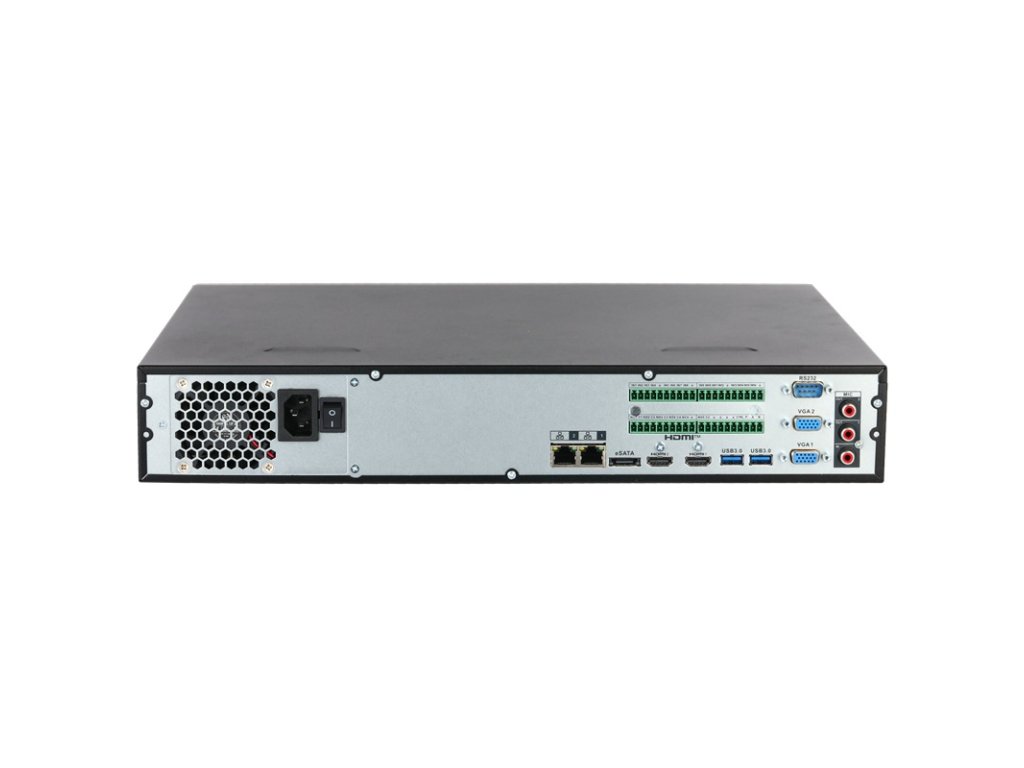 IP NVR 64-kanálov, OS Linux, podporované formáty Smart H.265+ / Smart H264+ / H.264 / H.265; záznam max. do 448 Mbps (Pri AI max 200 Mbps), maximálne rozlíšenie 32 Mpx na kameru; Inteligentné funkcie na NVR: Acu Pick by NVR max. 4 kanály, AcuPick NVR + AcuPick kamera max. 32 kanálov, Perimeter Protection max. 8 kanálov, Face Detection max. 4 kanály, Face Recognition max. 24 kanálov (FD kamera + FR NVR), max. 4 kanály (FR+ FD na NVR), SMD Plus max. 16 kanálov, Video Metadata max. 4 kanály; podpora video analytických funkcií z kamier: Face detection, Face recognition, Video metadata, Perimeter protection; SMD, Stereo analysis, Crowd distribution, People counting, ANPR, Vehicle density, Heat map, PPE detection, Smart object detection, Smart sound detection, AcuPick; 2x RJ-45 port (10/100/1000 Mbps), 2x HDMI (max. 7680 x 4320), 2x VGA, 1x RS-485, 1x RS-232, eSATA, 4x USB (z toho 2x USB 3.0) , Audio RCA I/O 1/2, Alarm I/O 16/8 (1x 12V 1A output), 8x SATA max. 20 TB, RAID 0/1/5/6/10; 440 × 458,4 × 94,9 mm, hmotnosť 6,27 kg (bez HDD), napájanie 100-240 VAC 50/60, pracovná teplota od -10 °C do +55 °C.Dodatočné parametre