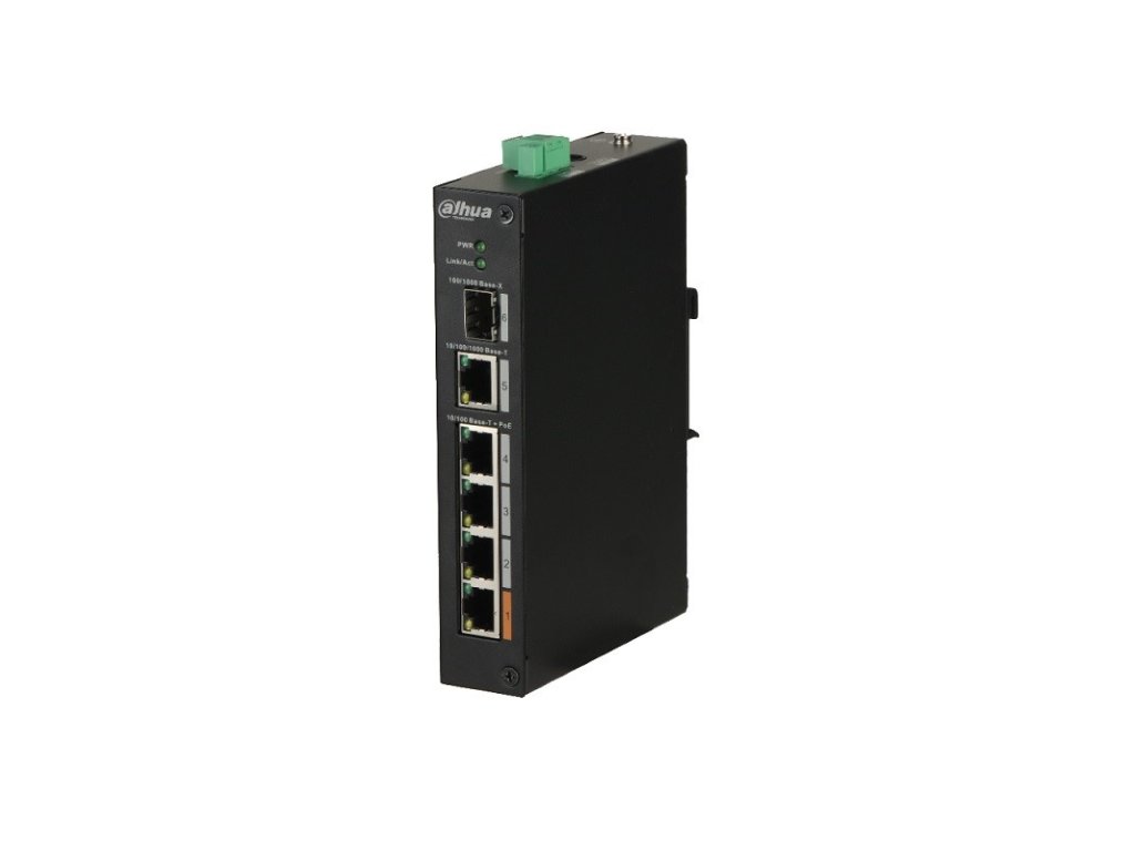 Dahua switch 4x 10/100 Mbps + 1x 10/100/1000 Mbps + 1x SFP 100/1000 Mbps, port 1 podpora Hi-PoE <60 W, porty 2-4 PoE (IEEE802.3af, IEEE802.3at) <30 W, celkovo na všetky porty max. 60 W, ochrana pred prepätím 4 KV, pracovná teplota od -30 °C do +65 °C, hmotnosť 0,44 kg, rozmery 150 x 108 x 30 mmSwitch nie je vhodný pre použitie s kamerami Avigilon.