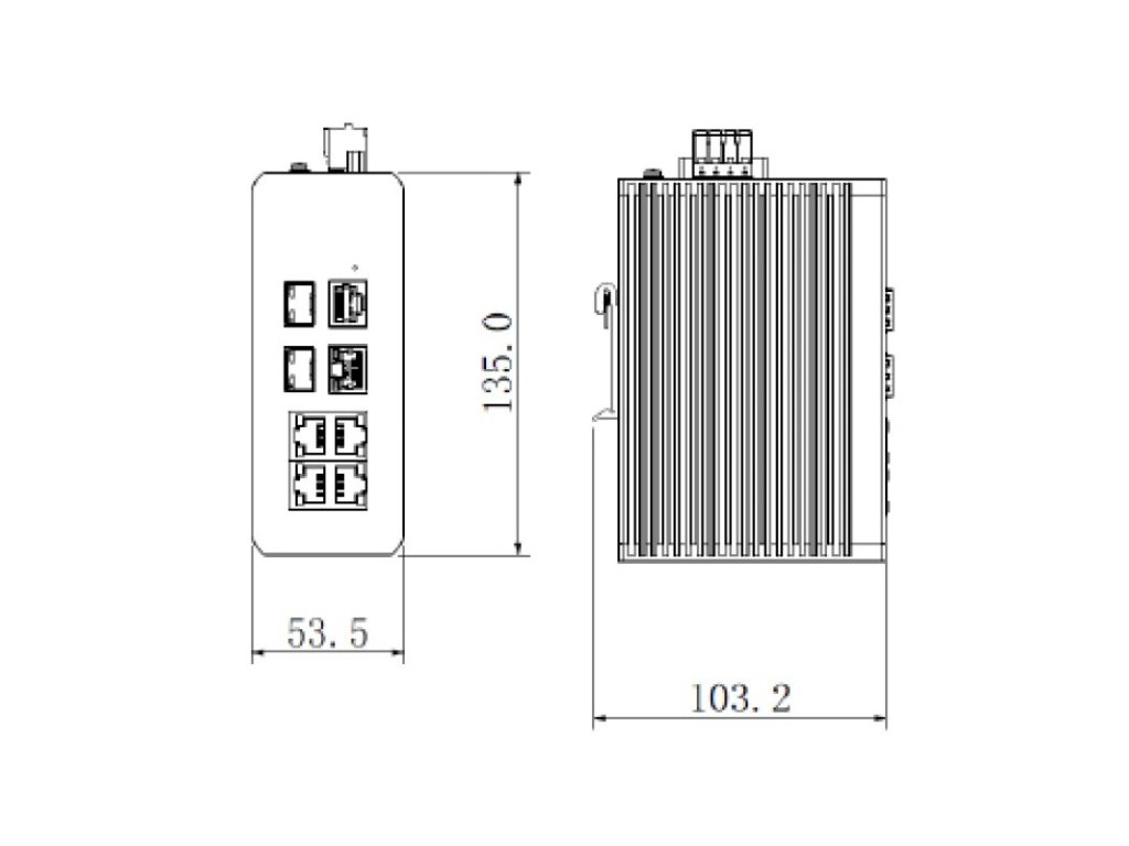 4portový PoE switch DAHUA, management, 4x Gbit PoE + 2x Gbit SFP + 1x Gbit uplink, napájanie DC 48–57 V (zdroj nieje súčasťou balenia), 4x PoE (IEEE802.3af) / PoE+ ( IEEE802.3at) / Hi-PoE, každý port max. 30 W, porty 1 a 2 max. 60 W, spolu max. 120 W, pracovná teplota od -40 °C do +75 °C, montáž DIN-Rail, hmotnosť 0,65 kg, rozmery 103,2 x 53,5 x 135,0 mm.