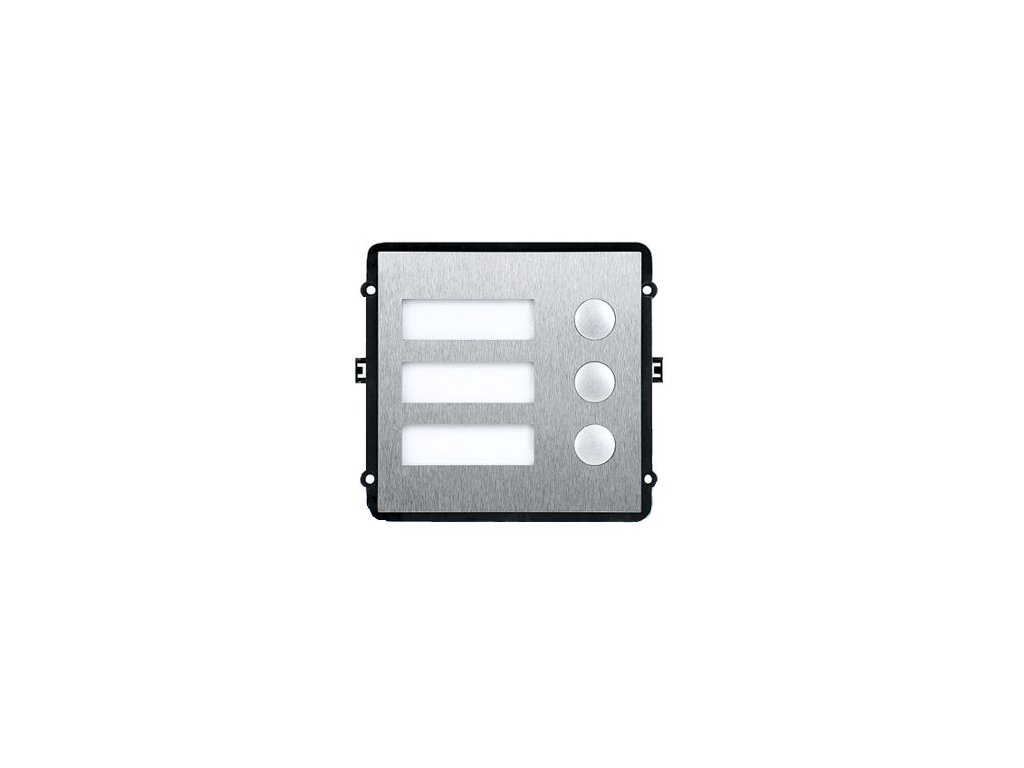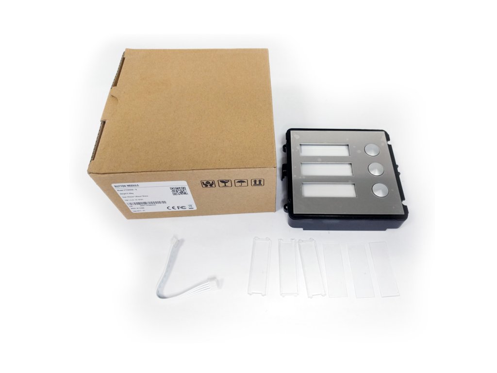 Modul pre IP Dahua dvernú viactlačidlovú jednotku, 3 tlačidla, podsvietené menovky, nerez prevedenie, nastavovanie cez webové rozhranie, napájanie z dvernej jednotky, montáž do inštalačného rámika, rozmery 110x110x25.
