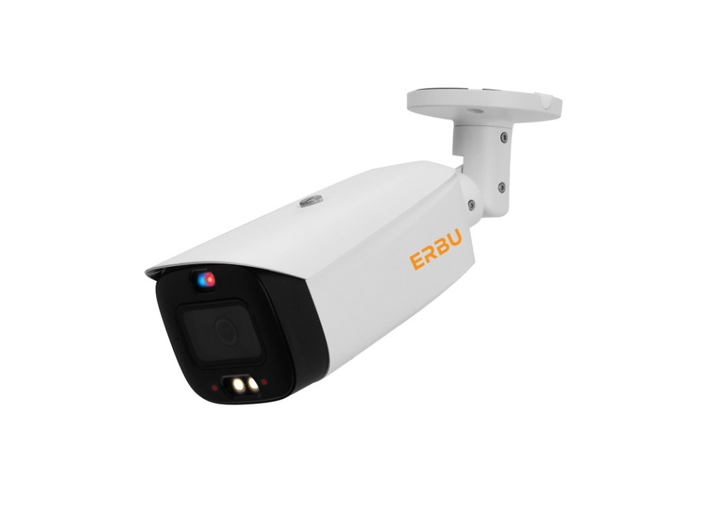 Vonkajšia kompaktná Full-color IP kamera ERBU E-B828-AFD EVO 4 s 8 Mpx rozlíšením. Vďaka prepracovanému integrovanému prísvitu v infračervenom a viditeľnom spektre dosahom až 30 metrov sa na ňu môžete spoľahnúť aj v noci, pri nulovom alebo minimálnom osvetlení. Kamera je navyše vybavená celým radom funkcií na vylepšenie obrazu v komplikovaných svetelných podmienkach. K zaujímavým funkciám patrí ochrana perimetra s aktívnym odstrašením zvukom a svetlom, zabudovaný mikrofón alebo slot na SD kartu. Kamera podporuje PoE napájanie využívajúce dátový kábel a nie je tak potrebný samostatný napájací zdroj. Kameru je možné prepojiť s mobilnou aplikáciou a prostredníctvom nej sledovať dianie v zornom poli kamery priamo na mobilnom telefóne. 8 Mpx rozlíšenie 3840 x 2160 px. Pevný objektív s ohniskovou vzdialenosťou 2,8 mm. Full-color. Snímkovanie 3840 × 2160 px @ 30 fps, 0,004 lx @ F1.0 (Color, 30 IRE) Uhol záberu H: 106°, V: 55°, D: 125°. Funkcie pre kompenzáciu komplikovaných svetelných podmienok: BLC, HLC, AWB, AGC, EIS, ROI, WDR 120 dB, 3DNR. Kompresia H.265 / H.265+ / H.264 / H.264+ / H.264B / MJPEG (only sub stream). IR LED a biely prísvit do vzdialenosti až 30 metrov (viditeľný prísvit je možné vypnúť a použiť len IR prísvit). Inteligentné funkcie: IVS (Perimeter Protection), SMD 4.0, Smart Search, Quick Pick, AI SSA. Alarm I/O 1/1, audio RCA I/O 1/1. ONVIF kompatibilita. Slot pre SD Kartu do 256 GB. Zabudovaný mikrofón a reproduktor. Pracovná teplota od -40 °C do +60 °C. Rozmery 288,4 × 94,4 × 84,7 mm a hmotnosť 1,0 kg. Napájanie 12 V DC / PoE (802.3af) a spotreba max. 9,1 W. Krytie IP 67.Dodatočné parametre