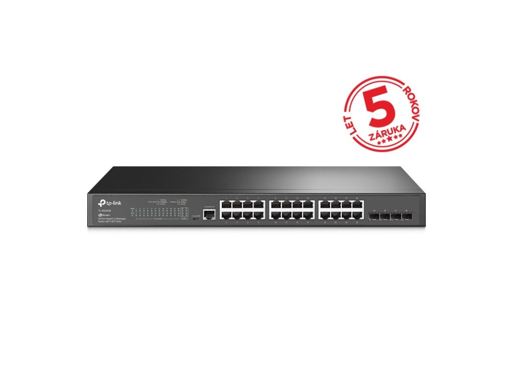 24portový gigabitový menežovateľný switch so 4 SFP portami, cloudová správa. Funkcie: ACL, ochrana proti DoS, Storm Control, DHCP Snooping, IP-MAC-Port Binding, IGMP snooping, web GUI, CLI, Telnet, SSH, SNMP, RMON, QoS, VLAN, pracovná teplota od 0 °C do +45 °C, napájanie 100–240 V AC 50/60 Hz, spotreba max. 19,22 W, rozmery 440 × 180 × 44 mm, možnosť montáže do racku.Dodatočné parametre