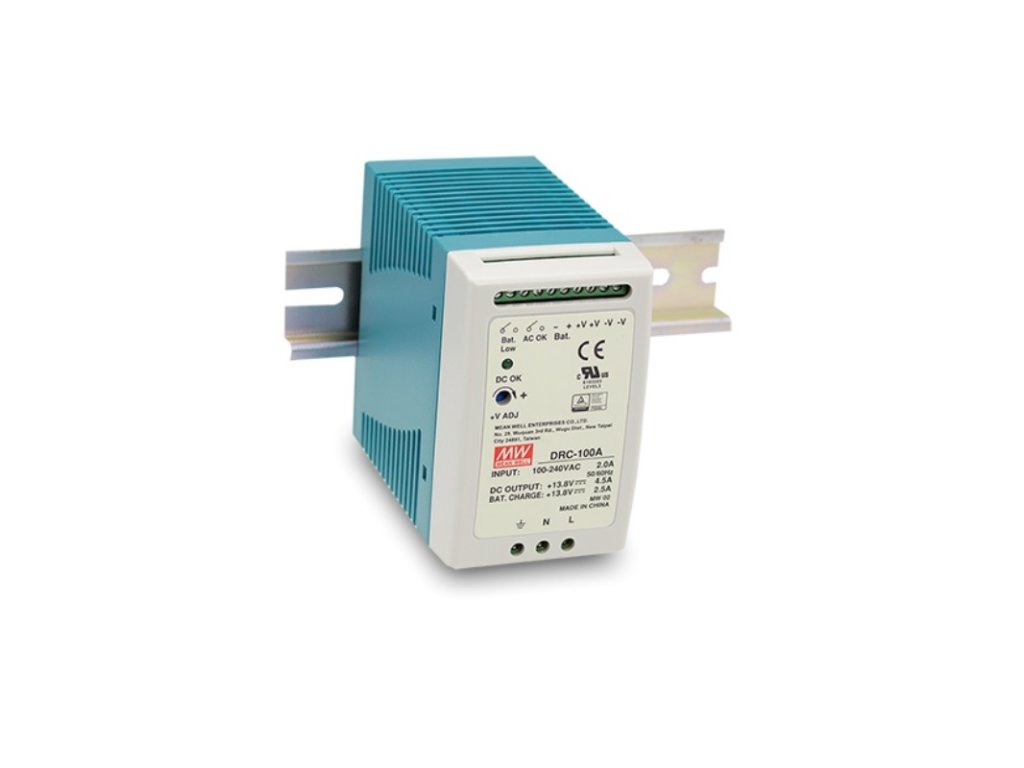 Napájací zdroj 13,8 V DC na DIN lištu, napájanie 90 až 264 V AC, výstup 13,8 V DC, výstup 1 4,5 A, výstup 2 2,5 A, V1+V2 max. 96 W, relé na kontrolu batérie, relé na kontrolu napájania, pracovná teplota od -30 °C do +70 °C, rozmery 55 x 90 x 100 mm, hmotnosť 0,37 KgDodatočné parametre