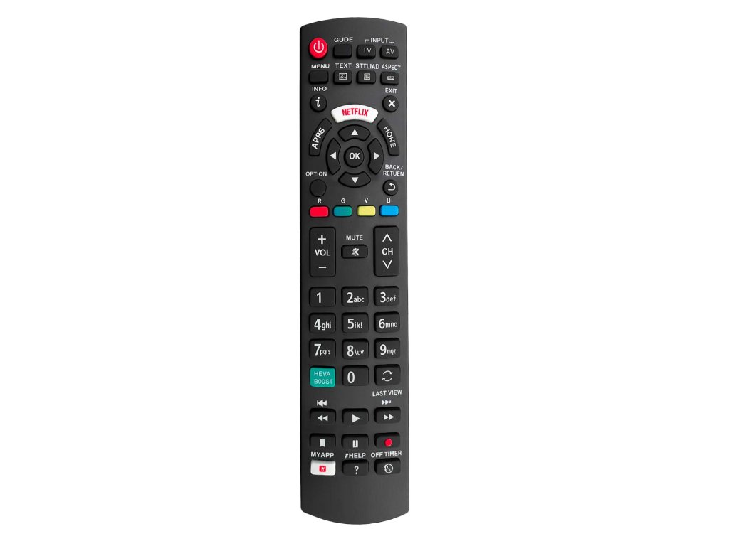 Diaľkové ovládanie určené pre televízor Panasonic, vyrobený z kvalitného čierneho ABS plastu. Obsahuje priamu voľbu Smart funkcií a vstup do obľúbenej aplikácie NETFLIX. Je určené pre väčśinu LCD, LED a Plazma TV vyrobených od roku 2000. Napájanie 2x batérie AA.