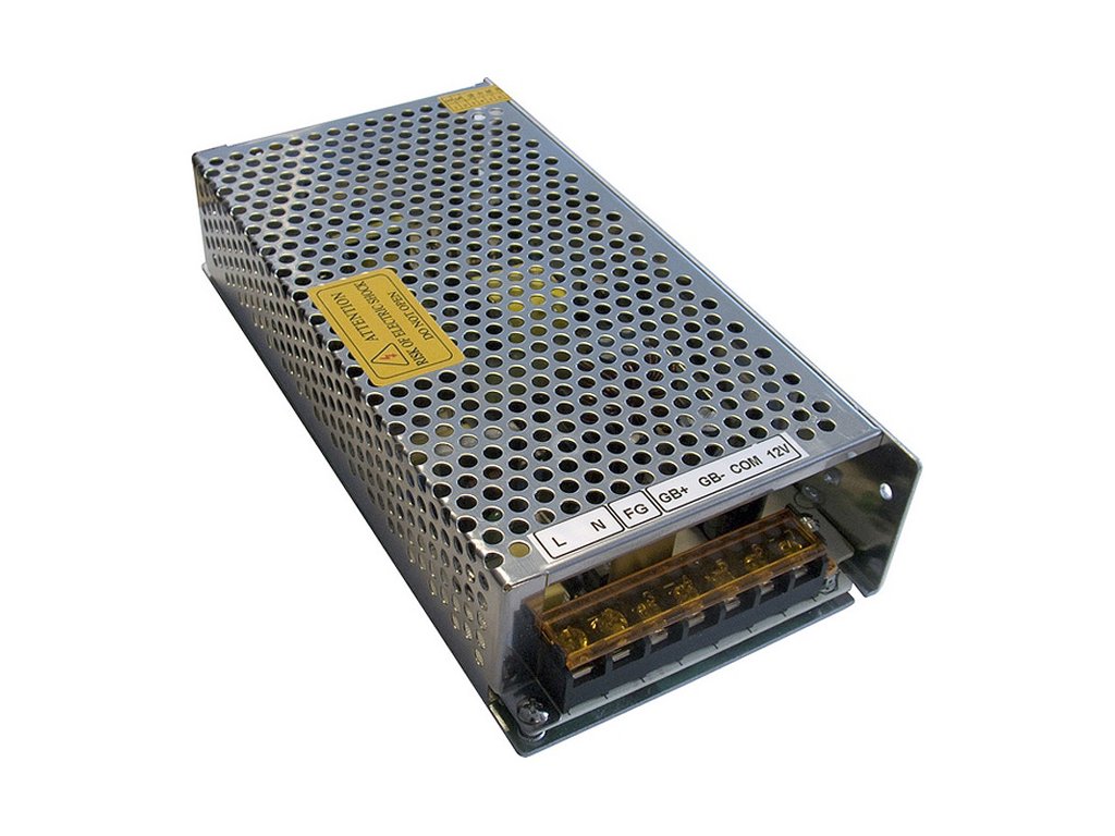 Napájací zálohovaný spínaný zdroj v kryte 12VDC/10A + výstup na akumulátor 13,8VDC/0,5A, (vstup 230V~ AC/ 50Hz).