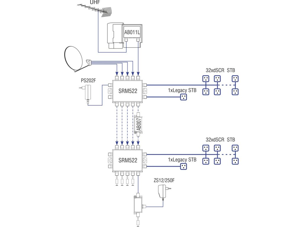 SRM522 dSCR multiswitch je profesionálne riešenie pre distribúciu satelitného signálu s podporou technológie dSCR / Unicable II (EN50607), ktoré umožňuje efektívny rozvod signálu do viacerých zariadení cez jeden koaxiálny kábel.